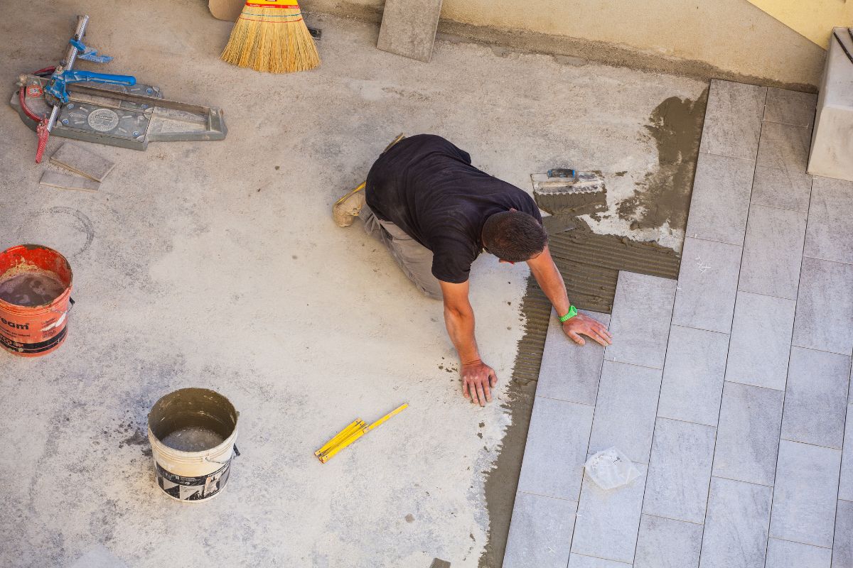 Weißer Natursteinkleber verhindert Verfärbungen.